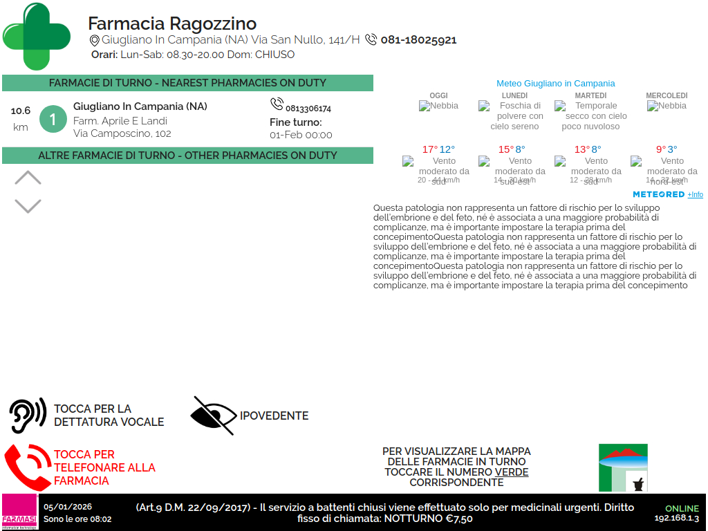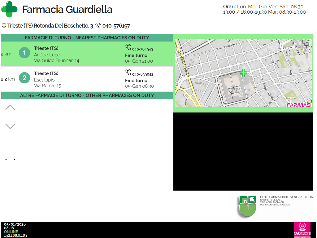 1/5/2026 8:08 AM 616970 20260105-080810_TS-FarmaciaGuardiella-Rotondadelboschetto3Trieste-RPI3B-NT_10.9.32.11_0.png